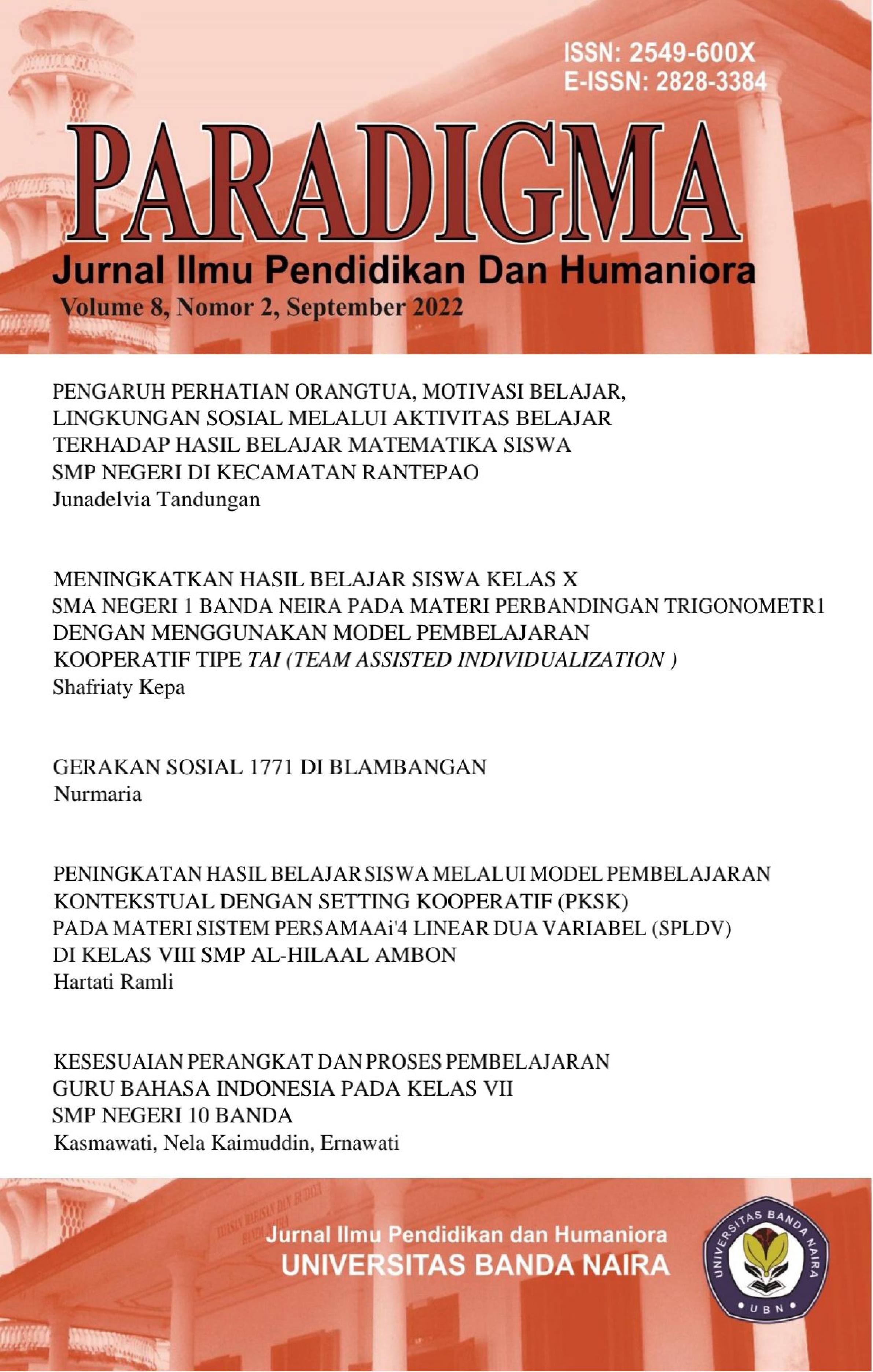 MENINGKATKAN HASIL BELAJAR SISWA KELAS X SMA NEGERI 1 BANDA NEIRA PADA MATERI PERBANDINGAN TRIGONOMETRI DENGAN MENGGUNAKAN MODEL PEMBELAJARAN KOOPERATIF TIPE TAI (TEAM ASSISTED INDIVIDUALIZATION)